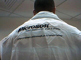 I can not judge the creativity of Lior, Ori and Gil, but I begin to produce such t-shirts. They are available in black and white in any size (M,L,XL and XXL) for 50 NIS (~12.5$) + postal costs (if you'll take it yourself nothing should be paid). If you want your own blog (or any other address) add another 5 NIS.